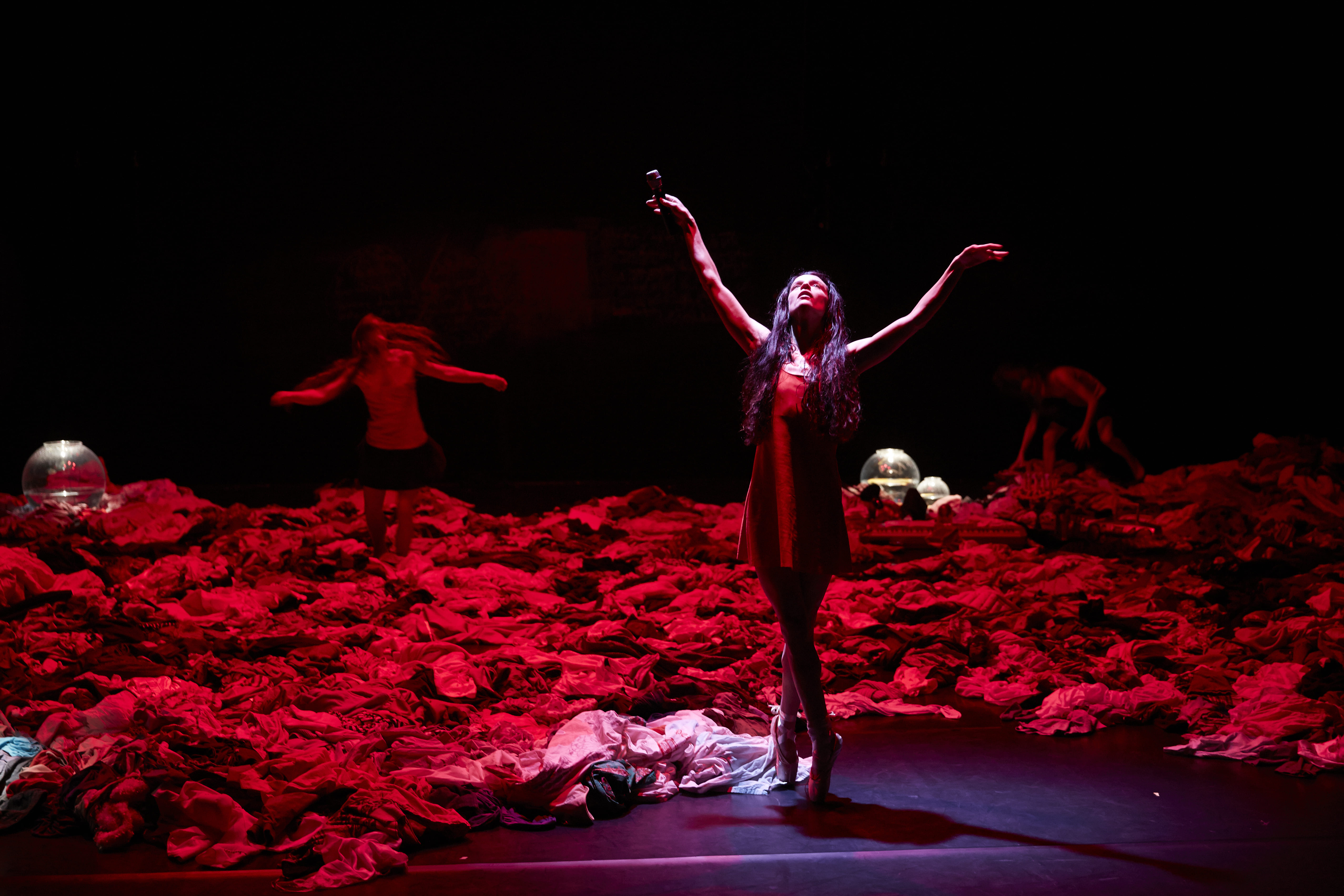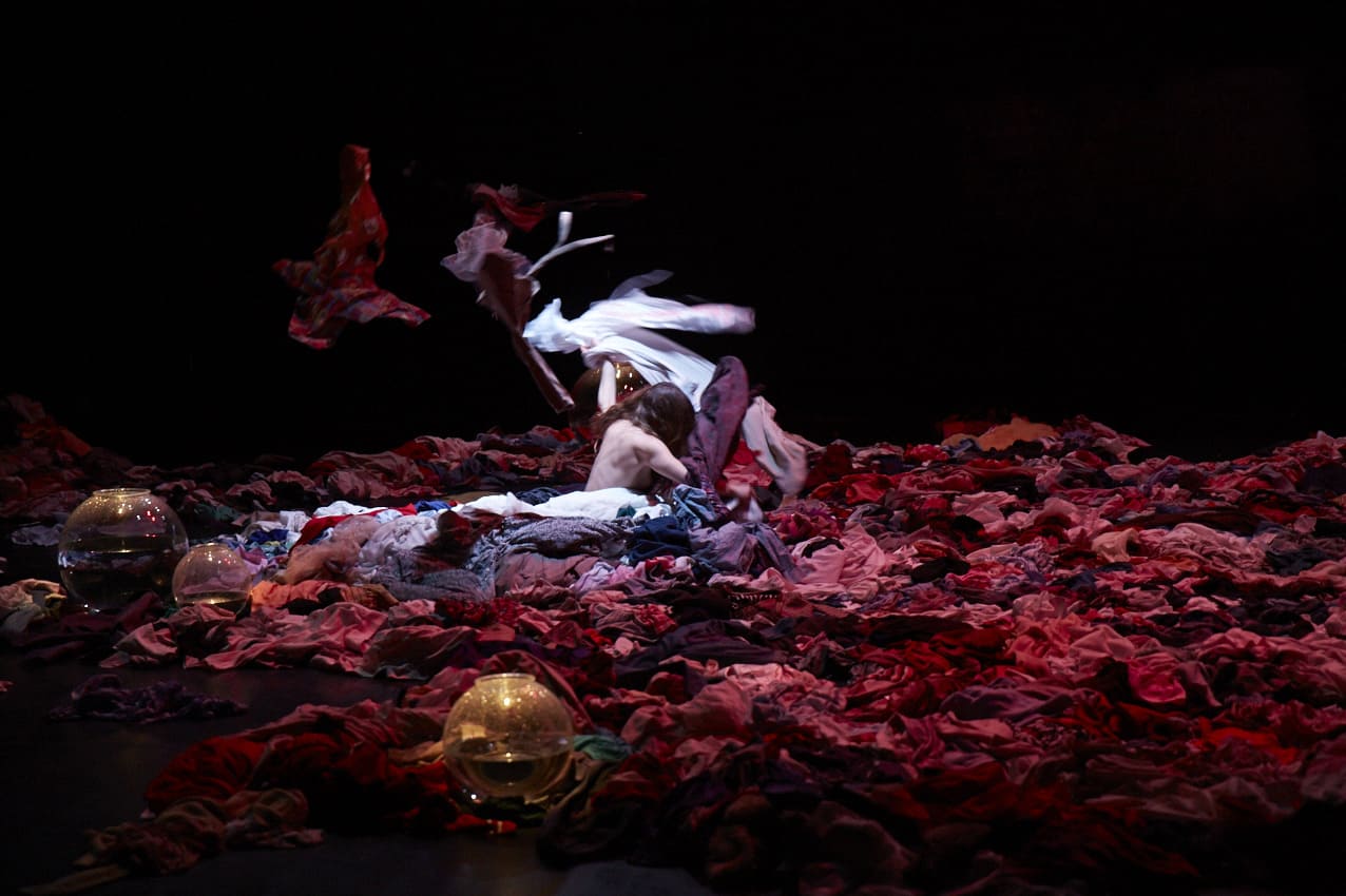 Récit profondément initiatique, le conte d’Andersen – l’un des quelques cent cinquante qu’il nous aura laissés – met en scène la métamorphose tragique de la fille du Roi des Ondins acceptant de perdre son monde et sa voix pour l’amour d’un prince qui finira par l’abandonner. Un amour où l’enfance se perd, déchirée entre la découverte du désir propre à cet âge incertain et la quête d’un absolu que le visage fuyant du prince ne pourra jamais tout entier accueillir. C’est à trois voix de jeunes femmes – trois comme les éléments, mer, terre, air, que traverse la petite sirène – qu’Alexis Moati a confié ce long poème d’Andersen qui plonge dans le rêve et l’étrange. Très librement, ouvrant les replis du récit d’Andersen au travail d’improvisation ou au silence de scènes muettes, Alexis Moati accorde ici une place centrale à la figure de la jeune fille. À l’aube d’une vie rêvée, les métamorphoses de la Petite Sirène seront le miroir – un miroir aussi changeant que celui que brouillent les houles marines – d’un âge qui se cherche et peine à trouver, et son corps, et sa voix.