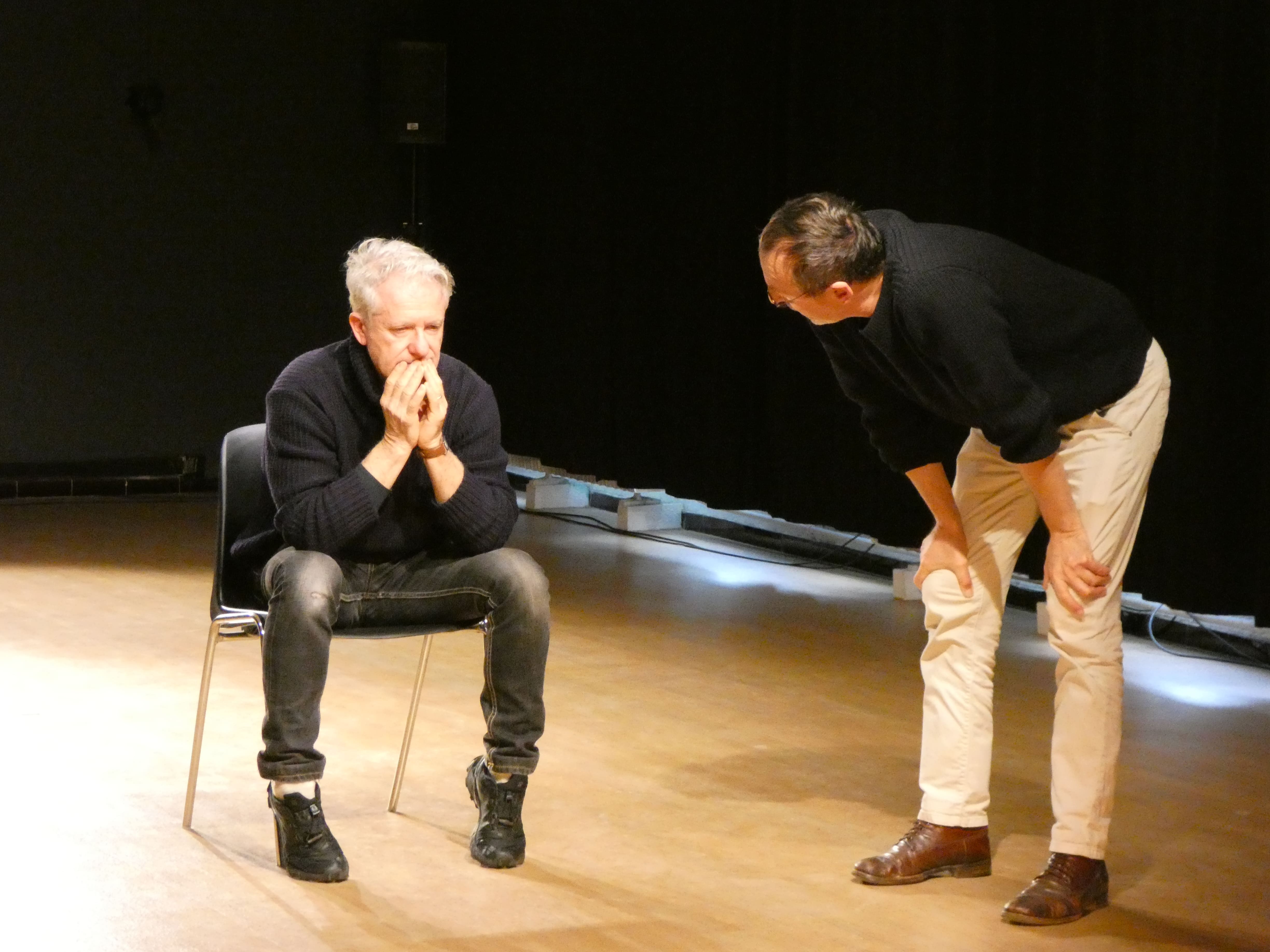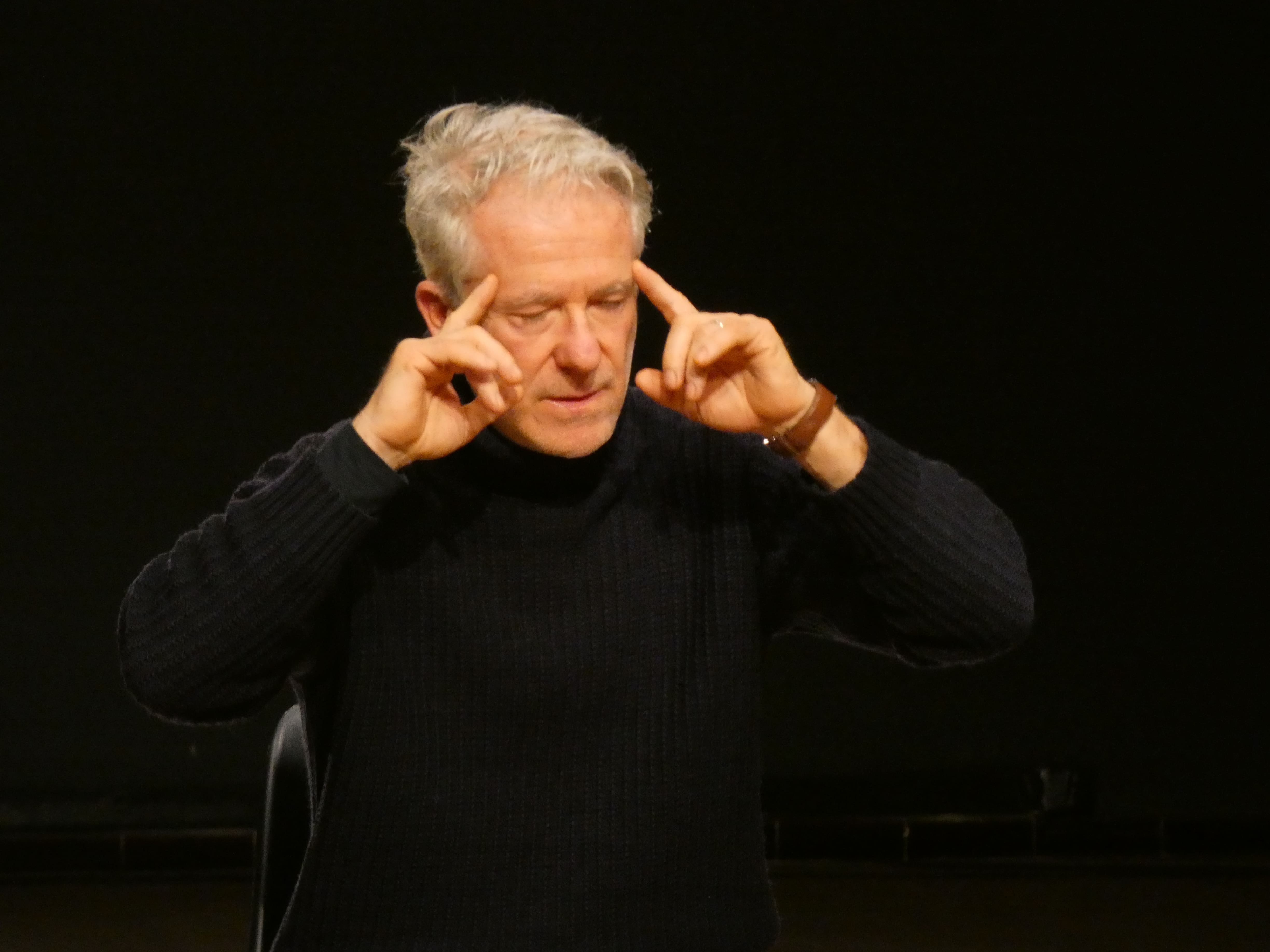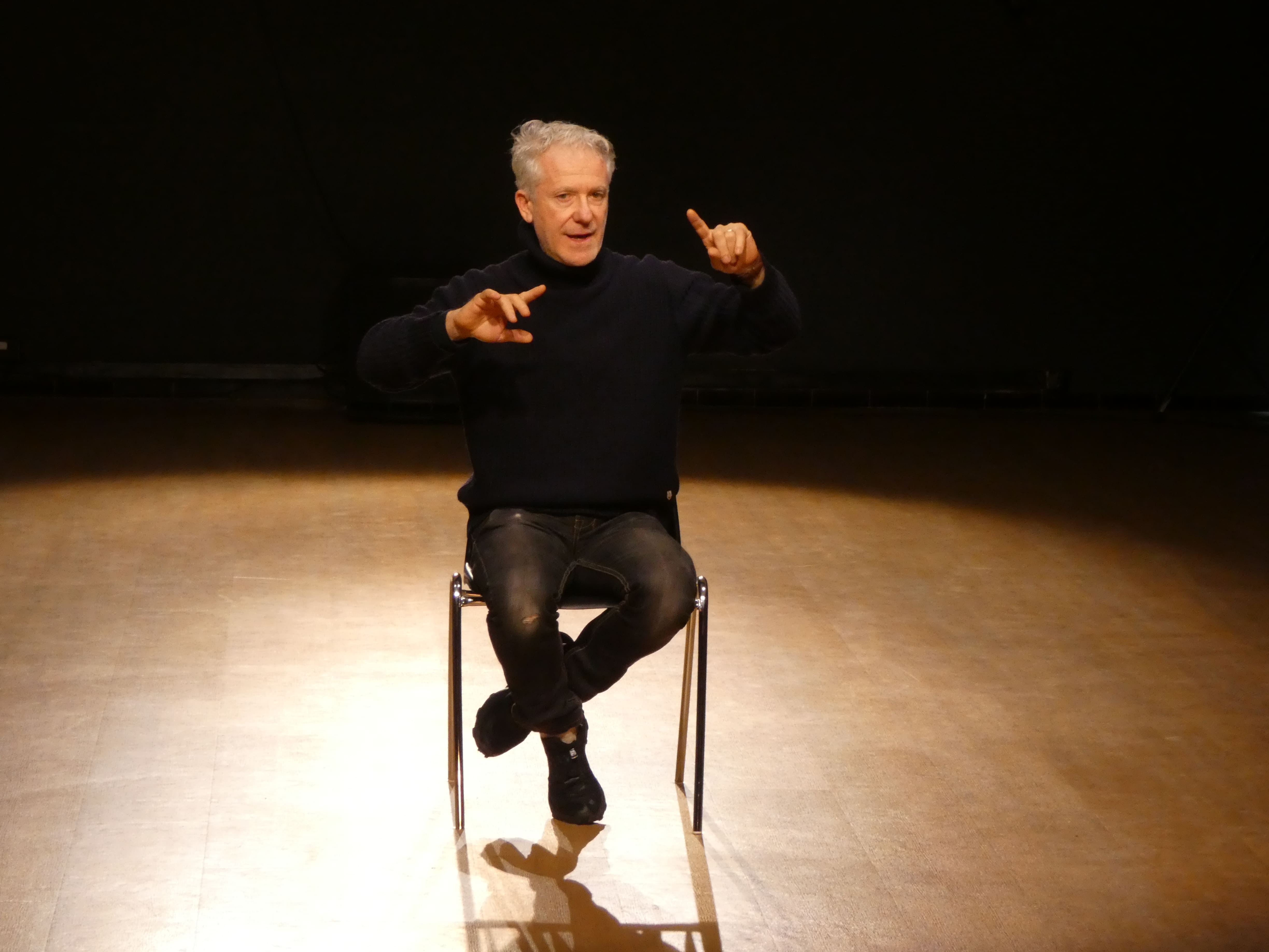 Être toutes ces personnes en même temps, c’est vertigineux et un immense défi pour l’acteur / auteur. Et c’est extrêmement incarné, de l’un à l’autre des deux extrêmes : l’imitation pure et une forme d’abstraction. Aussi, le défi qu’il se donne d’une interprétation de « trop » de personnages, comme pour tenter de saisir l’essence de ce qui fait théâtre ?